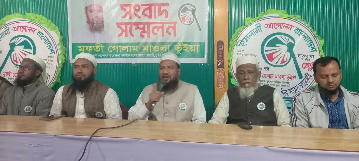 সংবাদ সম্মেলনে ত্রয়োদশ জাতীয় সংসদ নির্বাচনের ময়মনসিংহ-২ (ফুলপুর-তারাকান্দা) আসনে ইসলামী আন্দোলন বাংলাদেশ মনোনীত হাতপাখা প্রতীকের প্রার্থী মুফতী গোলাম মাওলা ভূইয়া সাংবাদিকদের সহযোগিতা কামনা করে বলেন, মুফতী গোলাম মাওলা ভূঁইয়া বলেন, এর আগেও দুটি জাতীয় নির্বাচনে সংসদ সদস্য পদে আমি নির্বাচন করেছি। তখন আমি নবীন ছিলাম, আমার পরিচিতিও কম ছিল। এখন আমাকে কেউ চিনে না এমন নেই। তিনি তার গ্রামের বাড়ির পরিচয় ও শিক্ষাগত যোগ্যতা তুলে ধরে বলেন, এবারও যারা নির্বাচনে অংশ নিয়েছেন কারো চেয়ে শিক্ষাগত যোগ্যতা বা ক্লিন ইমেজের দিক থেকে আমি কম নই। আল্লাহর রহমতে এমন কোন ত্রুটি বা দোষের সাথে জড়িত নই, যে কারণে আমাকে ভোট দেওয়া যাবে না। এর আগে পীর সাহেব চরমোনাই কেন ১১ দলীয় নির্বাচনীয় ঐক্য সমঝোতা থেকে বের হয়ে আসলেন তিনি এর ব্যাখ্যা প্রদান করেন এবং গর্ব করে বলেন, বাংলাদেশে একমাত্র ইসলামী দল ‘ইসলামী আন্দোলন বাংলাদেশ’ই আছে, যারা শুধুই বাংলাদেশে ইসলাম কায়েম বা শরিয়া আইন বাস্তবায়নের লক্ষ্যে নির্বাচন করছে।